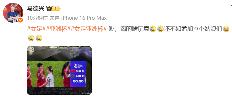 新一届女足亚洲杯终于打响,首轮比赛中作为卫冕冠军的中国女足首战孟加拉女足,结果凭借王霜和张睿在上半场的2粒进球,铿锵玫瑰以2比0小胜这支亚洲杯鱼腩球队。虽然取得开门红,这支中国女足的表现并不让外界满意,反而引起不少质疑。记者马德兴在赛后发文批评踢的是啥。